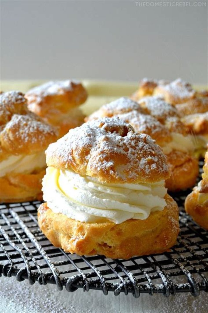 The foundation of the perfect cream puff is light, airy pâte à choux, which is made with eggs, flour, and butter. Once the cream puffs are shaped and baked, they’re filled with a rich homemade pastry cream.