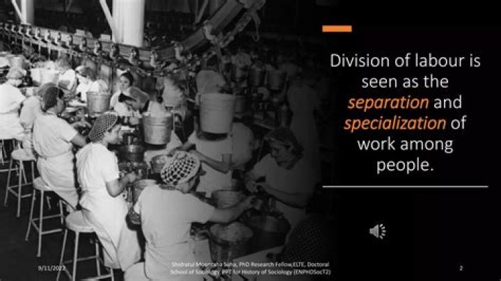 division of labour, the separation of a work process into a number of tasks, with each task performed by a separate person or group of persons. The French scholar Émile Durkheim first used the phrase division of labour in a sociological sense in his discussion of social evolution.