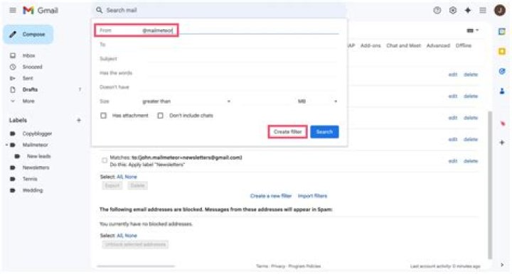 - 2) Select “Filters and blocked addresses”: