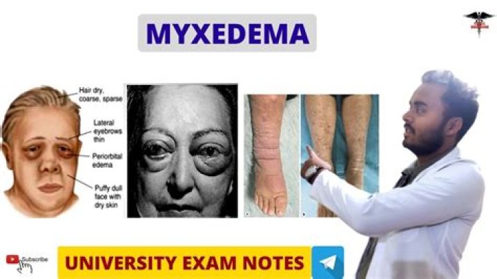 Myxedema is a result of undiagnosed or untreated severe hypothyroidism. It can also develop when someone stops taking their thyroid medication. It’s more common in the elderly and women. Deposits of chains of sugar molecules in the skin cause the skin condition myxedema.