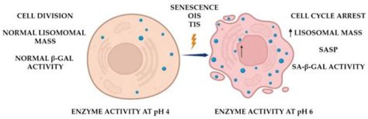 Cytochemically detectable beta-galactosidase (beta-gal) at pH 6.0 has been reported to increase during the replicative senescence of fibroblast cultures and has been used widely as a marker of cellular senescence in vivo and in vitro.