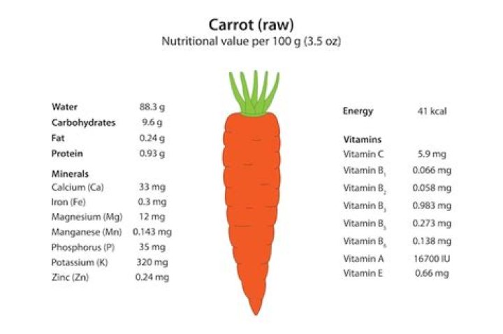 The nutrition facts for two small-to-medium raw carrots (100 grams) are: Calories: 41. Water: 88%