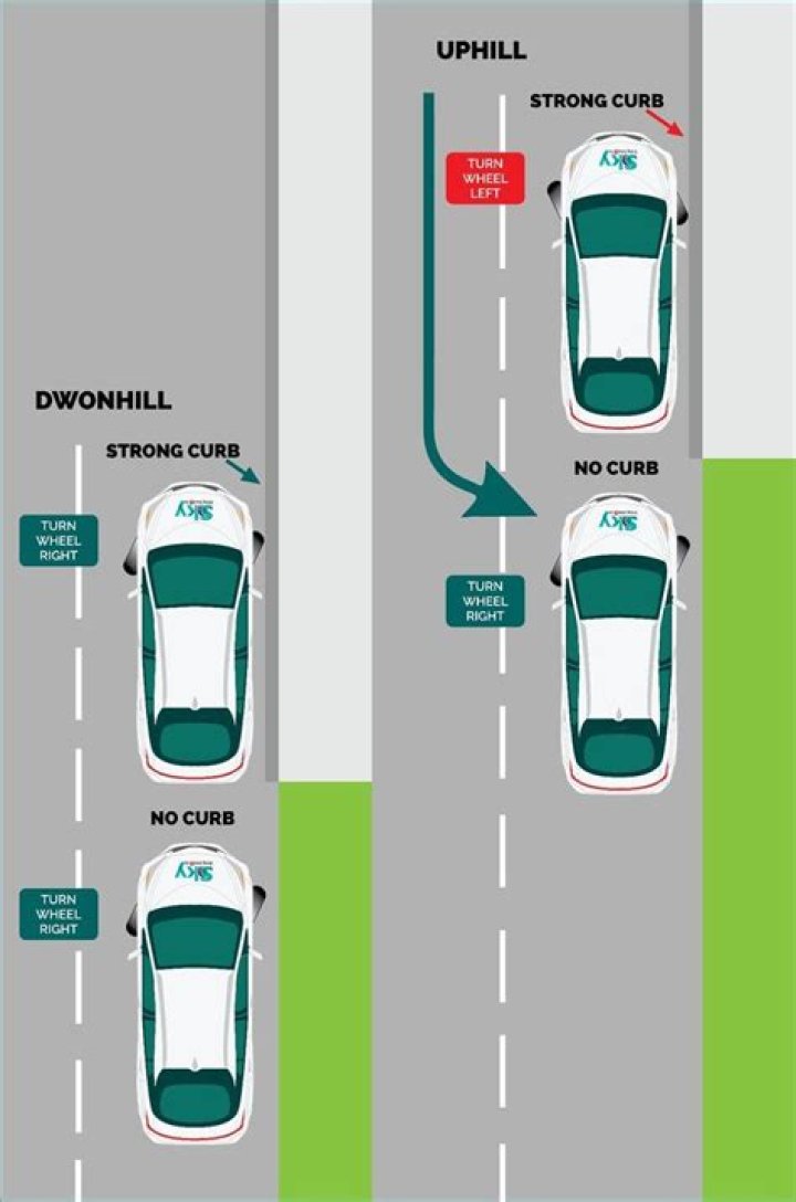 Government of Alberta Ministry of Transportation: The law requires that the wheels of a parked vehicle be no more than 50 centimetres from the curb. When parked, a vehicle with a manual transmission must be left in low gear or reverse.