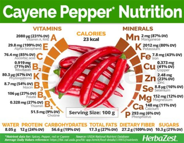 One tablespoon (5 grams) of cayenne pepper contains the following (1): Calories: 17. Fat: 1 gram. Carbs: 3 grams. Fiber: 1.4 grams. Protein: 0.6 grams. Vitamin A: 44% of the RDI. Vitamin E: 8% of the RDI.