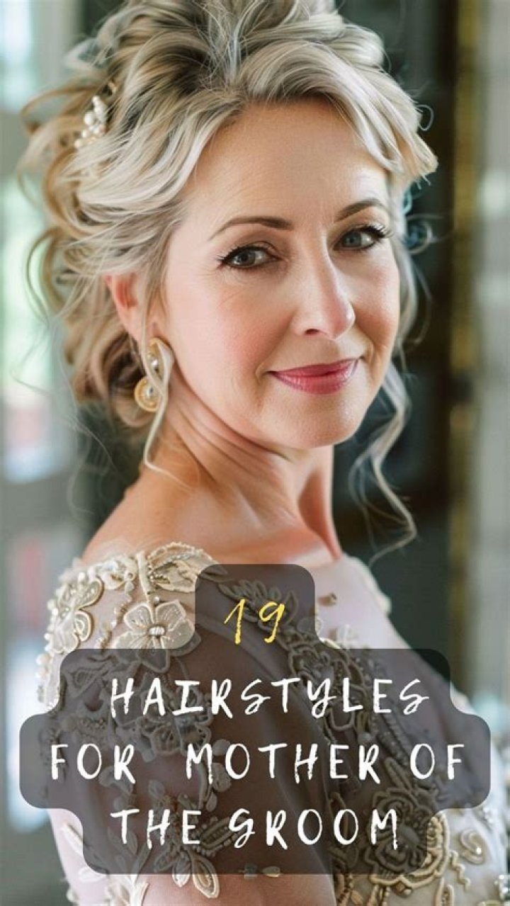 Most of the time the perfect mother of the groom hairstyle is an updo. Wearing your hair down is allowed for the locks that hold shape well and the hair, which is too short to style.