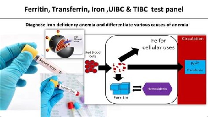 Ferritin: usually low in iron deficiency. Less than 10 is virtually diagnostic of iron deficiency anemia, while levels between 10 and 20 are suggestive.