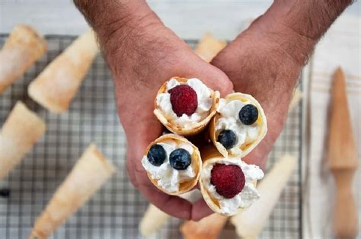 Krumkake is a thin, delicate embossed cookie of Norwegian origin. Typically the cookie is rolled into a cone while still warm and flexible. A Pizzelle is a traditional Italian sugar cookie served plain or rolled into a cone and filled with fruit or ice cream.