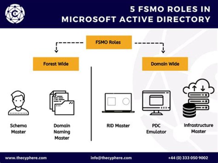 The last three are domain-wide, meaning there is one of each per domain. If there is one domain in your forest, you will have five FSMO roles. If you have three domains in your forest, there will be 11 FSMO roles. Active Directory Schema snap-in: Will be used to transfer the Schema Master role