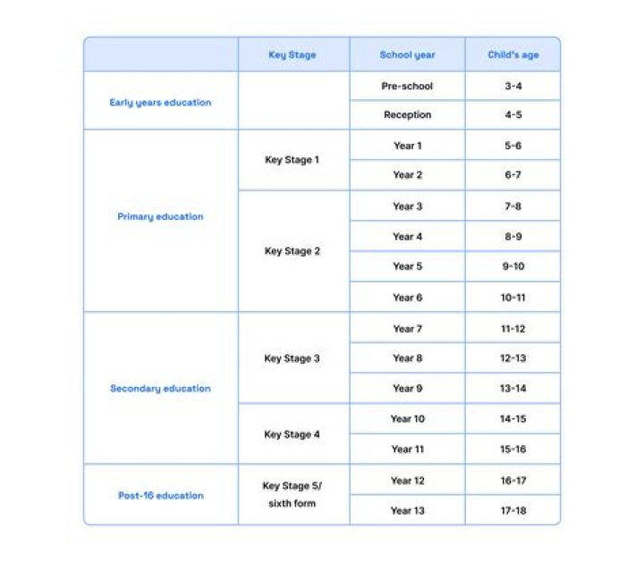 | 2 | 8-11 by 31 August | SATs, eleven plus exam (generally only for Grammar school entry) |
