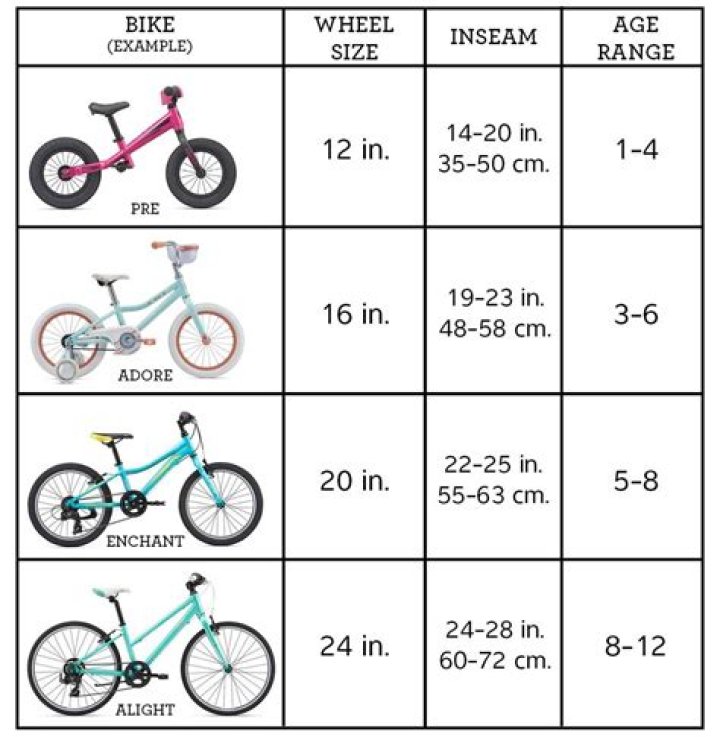 | Bike Wheel | Child Height (in.) | Approx. Age |
