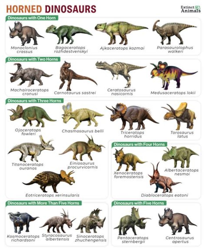 The most famous ceratopsian is Triceratops, with its three horns. But Triceratops is just one member of this large family of dinosaurs, each with its own unique appearance.