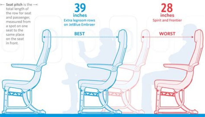 Put simply, seat pitch is the measurement between one seatback and the same spot on the next seatback. In economy class, a good seat pitch is considered 32 inches or more. Many major U.S. airlines have reduced seat pitch on much of their domestic fleet to a tight 30 to 31 inches.