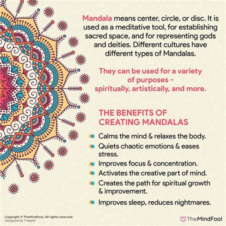 Mandalas are often used in therapy. Your mandala is your sacred circle, and it tells your story. Drawing mandalas as a form of art therapy can reduce anxiety, tension and overall stress. Drawing stimulates creativity and is a way to release emotional blockages.