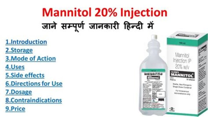 Mannitol 20% Infusion is a medicine used in the treatment of acute renal (kidney) failure, cerebral edema (accumulation of excessive fluid in the brain) and to reduce the pressure inside the eyes in a condition called glaucoma.