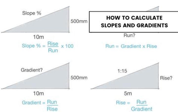 A 1:0.5 slope means that for every 1 metre along the ground, the slope height increases by 0.5 metres. A gradient can be expressed in 2 ways, a number or a ratio. For instance, a 1:40 gradient number is shown as 0.025 (an example is shown in the calculation section).