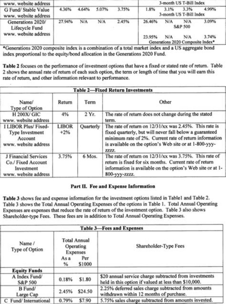 As of 2012, participants in retirement plans such as 401k plans will understand how much they pay to save and invest in the plan. ERISA Section Under 404(a)(5) requires 401k providers to disclose how much employees personally pay each quarter.