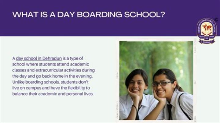 What is Day-Boarding School? Day boarding school is a boarding school in which students attend school by day and return to their families in the evening. Day boarding school provides study space to the students but it does not provide a bedroom to them.