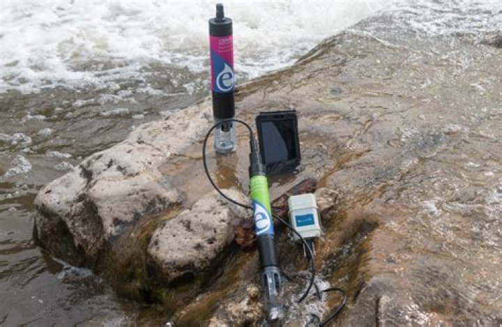 A sonde is a piece of equipment used to monitor water quality. Properly calibrated sensors that measure different water quality parameters (e.g., pH, temperature, dissolved oxygen) are attached to one end of the sonde. The sonde is placed in a lake or river and it collects data from the water at regular intervals.
