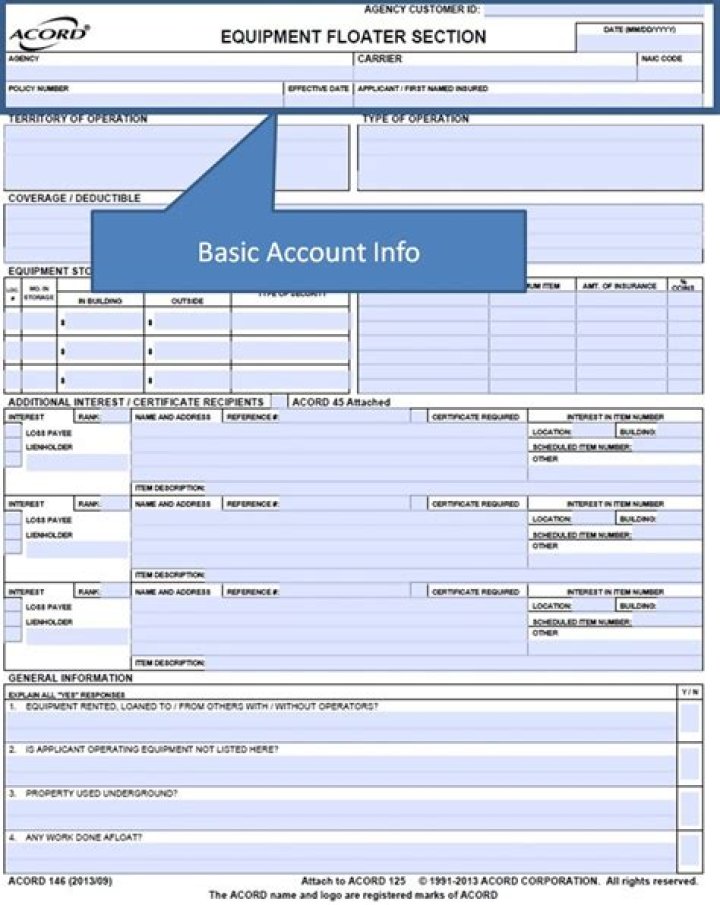 Within the various types of property insurance, equipment floater insurance is more specifically defined as a form of inland marine coverage. Inland marine insurance provides coverage for property that is not and cannot be permanently affixed to a single location.