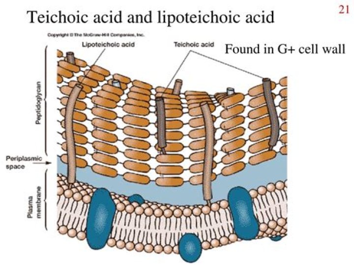 Teichoic acids that are anchored to the lipid membrane are referred to as lipoteichoic acids (LTAs), whereas teichoic acids that are covalently bound to peptidoglycan are referred to as wall teichoic acids (WTA).