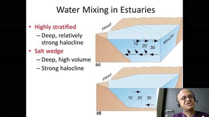 estuary, partly enclosed coastal body of water in which river water is mixed with seawater. Additional mixing may be caused from time to time by strong winds and by internal waves that are propagated along the interface between fresh and salt water.