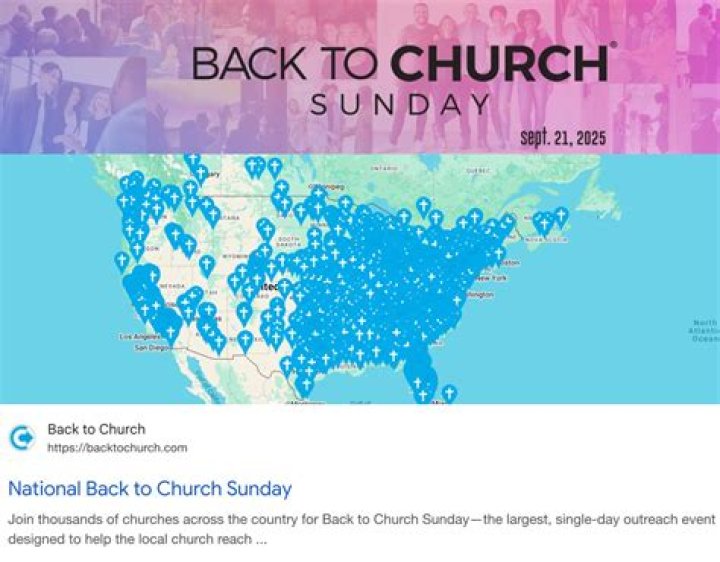 National Back to Church Sunday, which started in 2009, is “the largest community-based outreach effort in the nation.” Churches and church members plan for the day and use tools from National Back to Church Sunday’s website to help welcome and bring people back to church.