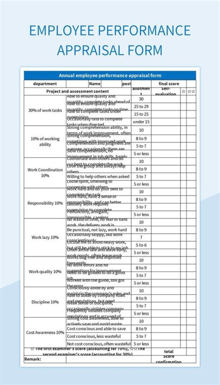 What should I fill in a performance appraisal form?