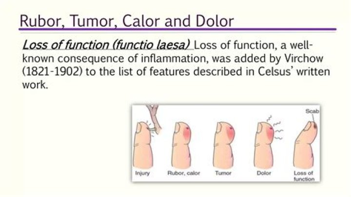 Based on visual observation, the ancients characterised inflammation by five cardinal signs, namely redness (rubor), swelling (tumour), heat (calor; only applicable to the body’ extremities), pain (dolor) and loss of function (functio laesa).