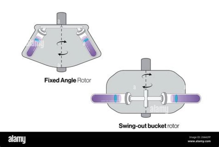 Fixed-angle rotors hold tubes at a stable angle (typically 45°) relative to the axis of rotation. A swinging-bucket rotor swings out when centripetal force is applied and holds the cells at an approximate 90° angle relative to the angle of rotation.