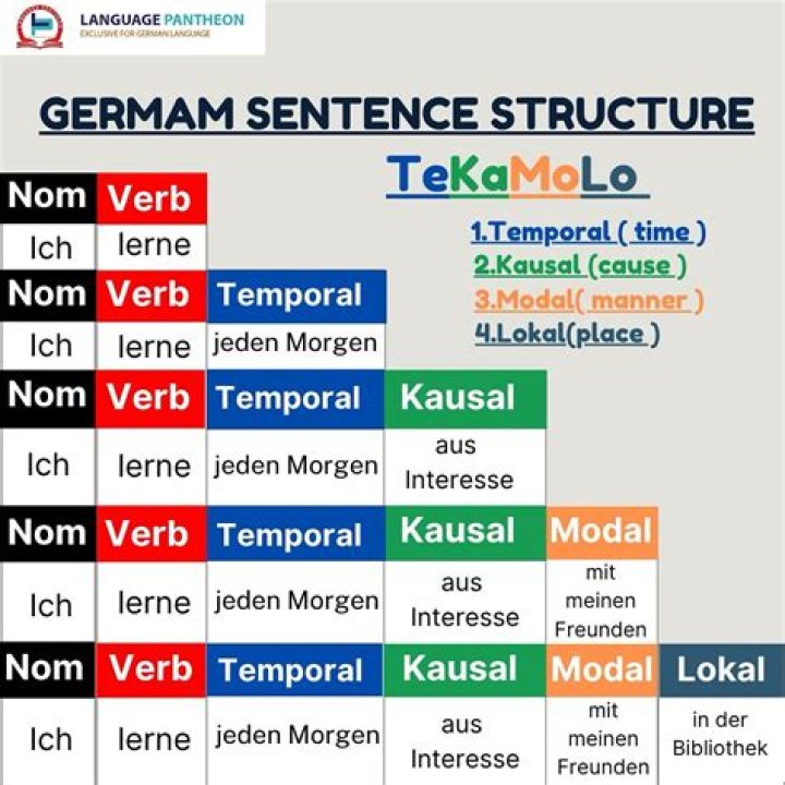 So ingenious German teachers came up with the abbreviation “tekamolo”, which stands for temporal (time), kausal (reason), modal (manner), lokal (place). I find the question words associated with those information more helpful.