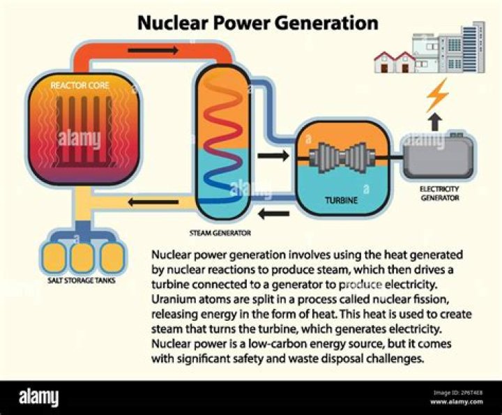 Nuclear is a zero-emission clean energy source. It generates power through fission, which is the process of splitting uranium atoms to produce energy. The heat released by fission is used to create steam that spins a turbine to generate electricity without the harmful byproducts emitted by fossil fuels.