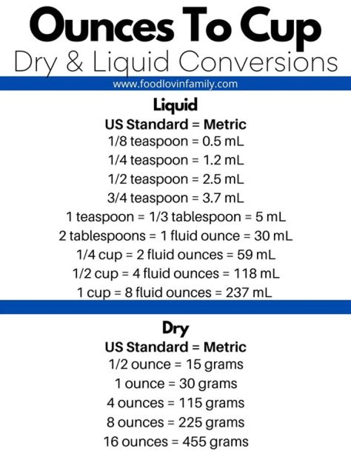 What is the equivalent measure for one cup?