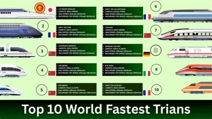 1. Shanghai Maglev – China, 267 mph. At the top of the list of top 10 fastest trains in the world is a machine that many would refuse to call a real train. But like it or not the Shanghai Maglev is the world’s fastest train.