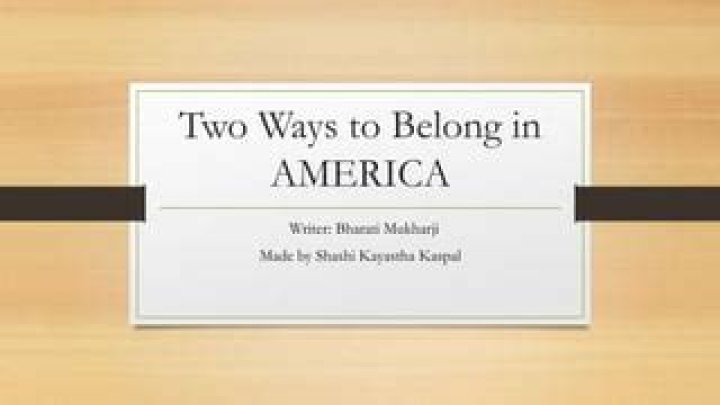 Bharati Mukherjee’s story, “Two Ways to Belong in America”, is about two sisters from India who later came to America in search of different ambitions. Growing up they were very similar in their looks and their beliefs, but they have contrasting views on immigration and citizenship.