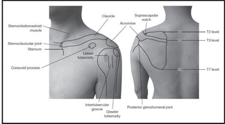 Four joints are present in the shoulder: the sternoclavicular (SC), acromioclavicular (AC), and scapulothoracic joints, and glenohumeral joint.