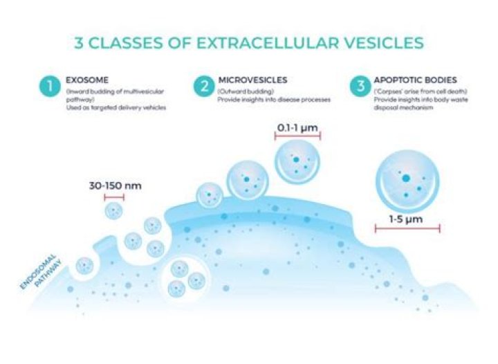 Exosomes are commonly defined as vesicles ranging from 30nm to 100 nm similar to viruses. Microvesicles are larger with 100 nm to 1 µm in diameter overlapping with protein aggregates and bacteria. Apoptotic bodies are very heterogeneous in size ranging from 50 nm to 5 µm (Thery et al., 2009).