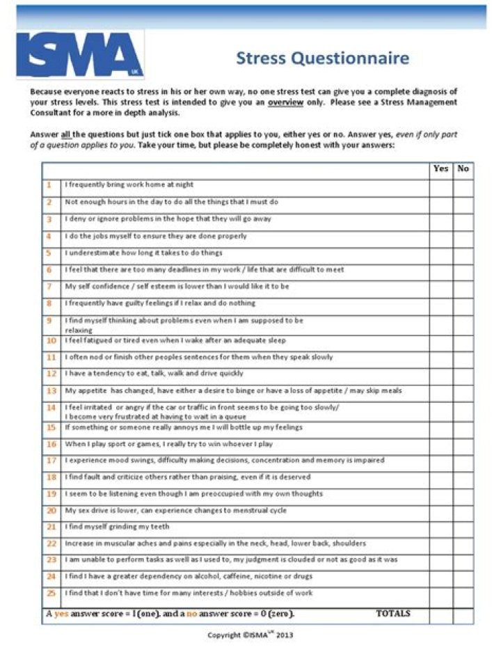 What is the stress management questionnaire?