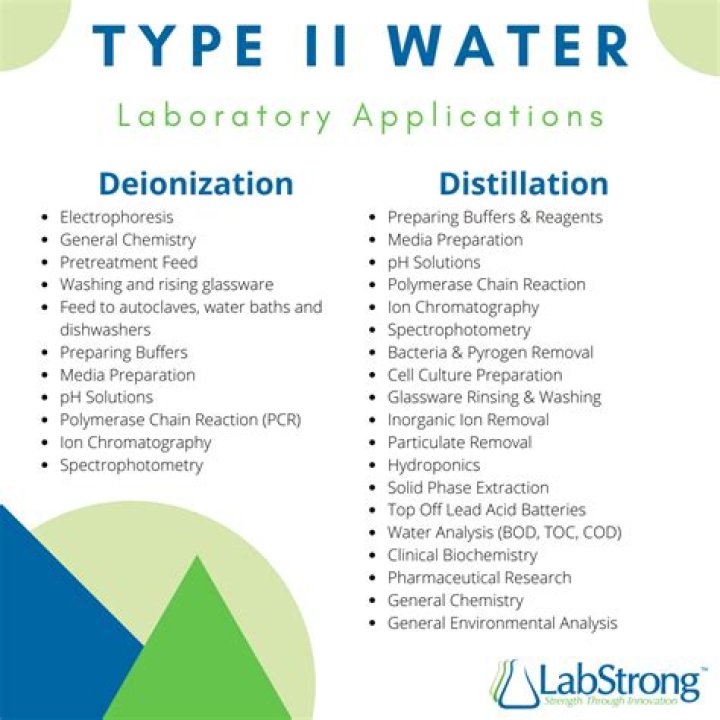 2:Type 2 laboratory grade water is used in general laboratory applications such as buffers, pH solutions and microbiological culture media preparation; as feed to Type 1 water systems, clinical analyzers, cell culture incubators and weathering test chambers; and for preparation of reagents for chemical analysis or …