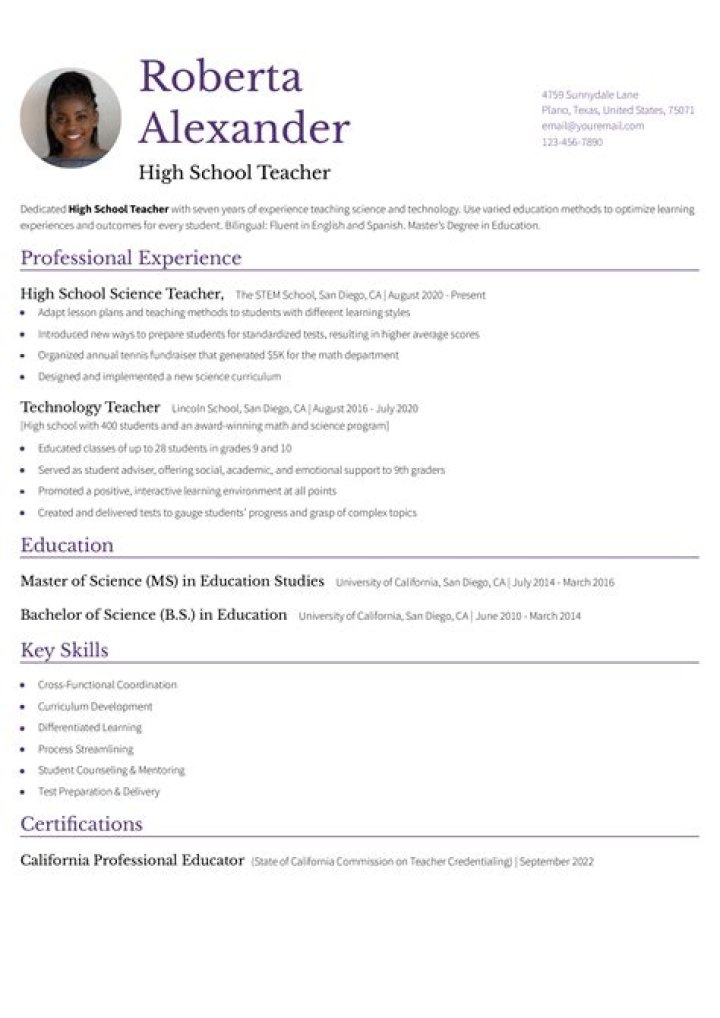 Highlight your education and credentials: Teaching jobs typically require specific degrees and certifications, so be sure to highlight your education. Include an “Education” resume section towards the top of your document, so it is one of the first things an employer sees.
