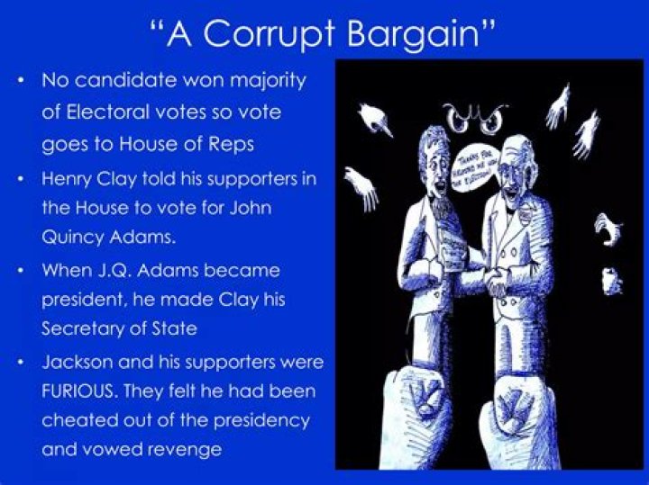 In return for Clay’s support, Adams appointed Clay as the Secretary of State. Jackson’s supporters termed the appointment a “corrupt bargain,” arguing that it displayed a corrupt system in which the elite insiders forged coalitions in pursuit of self-interests, ignoring the will and voice of the people.