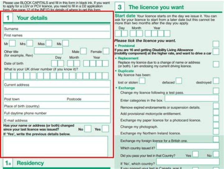 What is a D1 form DVLA?