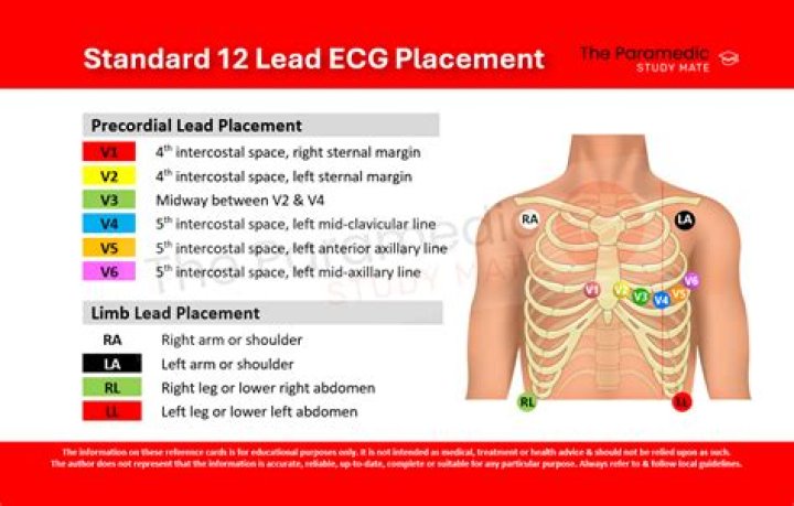 To locate the space for V1; locate the sternal notch (Angle of Louis) at the second rib and feel down the sternal border until the fourth intercostal space is found. V1 is placed to the right of the sternal border, and V2 is placed at the left of the sternal border. Next, V4 should be placed before V3.