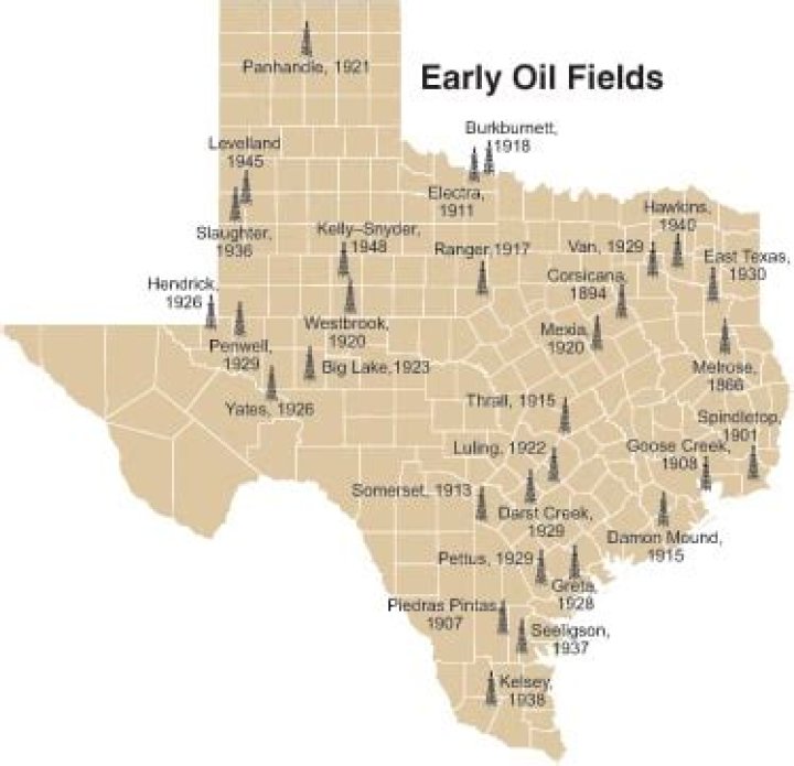 The first boom came in 1901 with Spindletop field in the Gulf Coast Basin. Thousands of other discoveries have followed. East Texas Oil Field, the largest oil field in Texas or in any of the U.S. Lower 48 states as measured by cumulative production, was discovered in 1930.