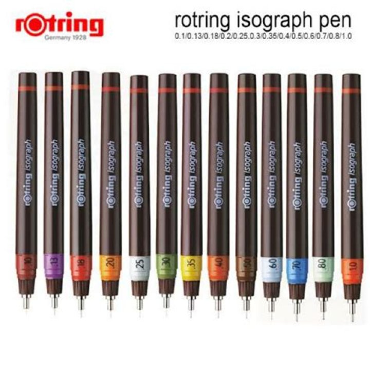 Rotring Rapidograph and Isograph Pens are steel nibbed Technical Pens for drawing on tracing paper, vellum and lineboard. Both Rapidograph and Isograph Pens have been used for years by draughtsmen and engineers to make lines of a constant width.