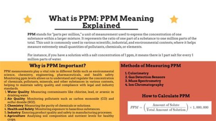 Definition – What does Parts Per Million (PPM) mean? Parts per million (PPM) is a unit of measurement used when expressing a very dilute concentration level of pollutants in the air, water and other fluids. For example, 1 PPM of ink in water means that in a million mass units of water there would be one mass unit of ink.