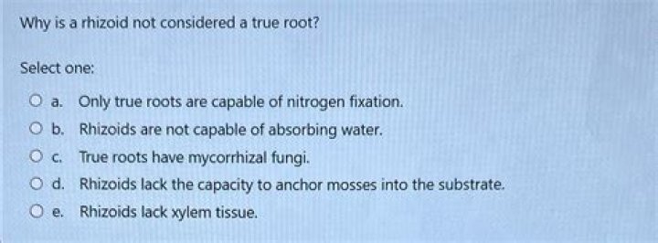 Why is a rhizoid not considered a true root? A. Rhizoids lack the capacity to anchor mosses into the substrate.