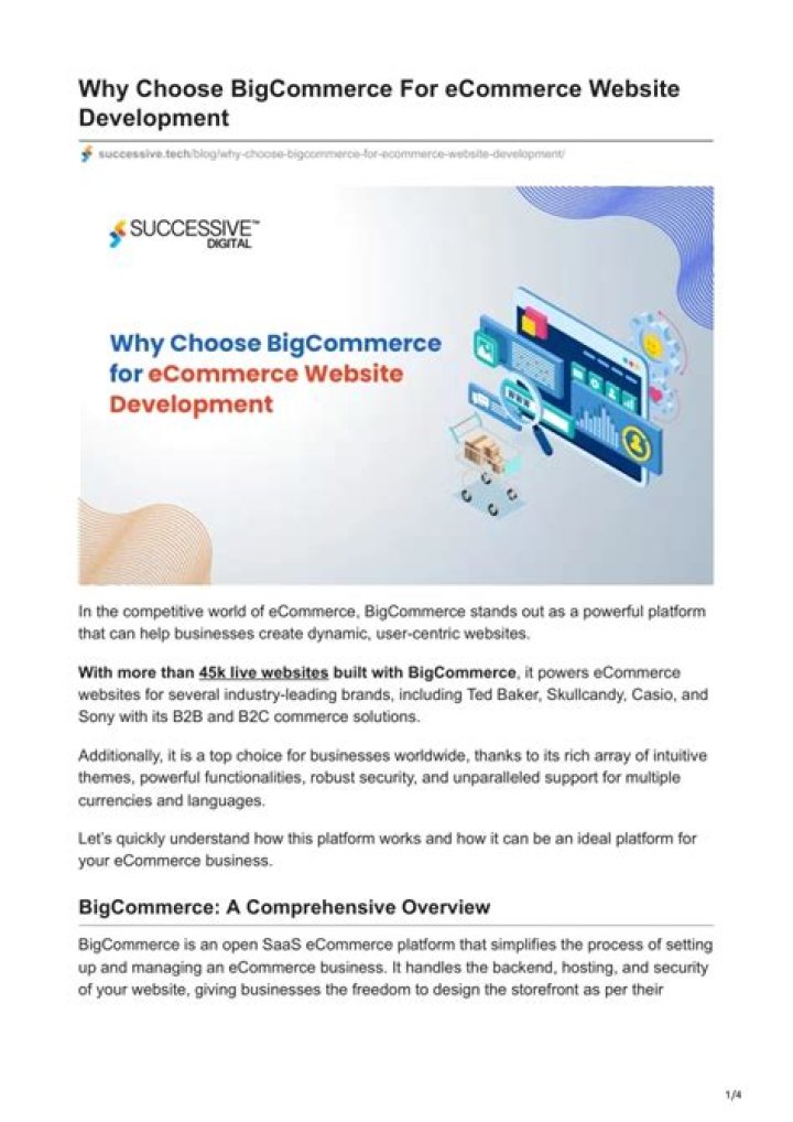 Overall rating. BigCommerce is a leading ecommerce builder, providing extreme scalability for online stores. It has more built-in sales tools than any of its competitors, and combines these features with advanced SEO and fantastic multi-channel integration.