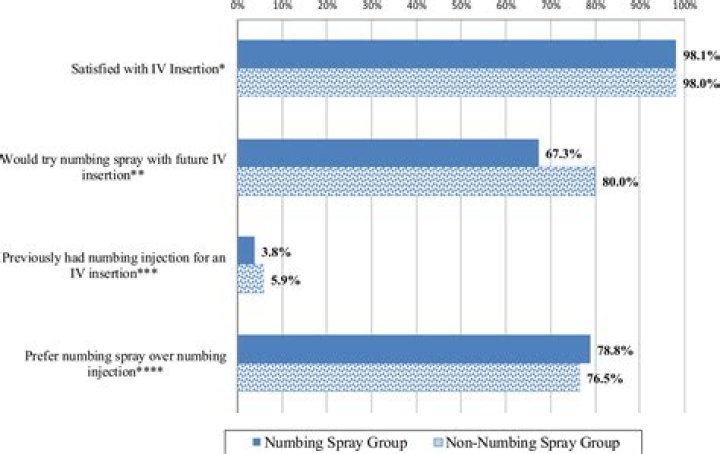 Will patients perceive a numbing spray to be an effective method of anesthetizing an intravenous site?